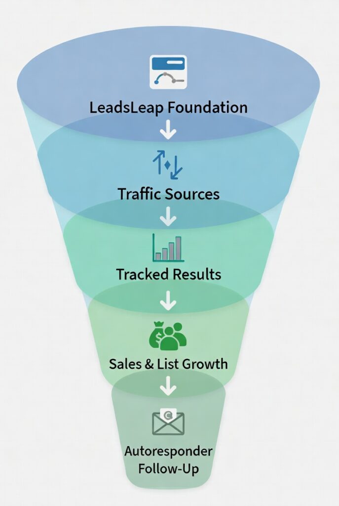 I set up my LeadsLeap account once. Then everything flows through it: